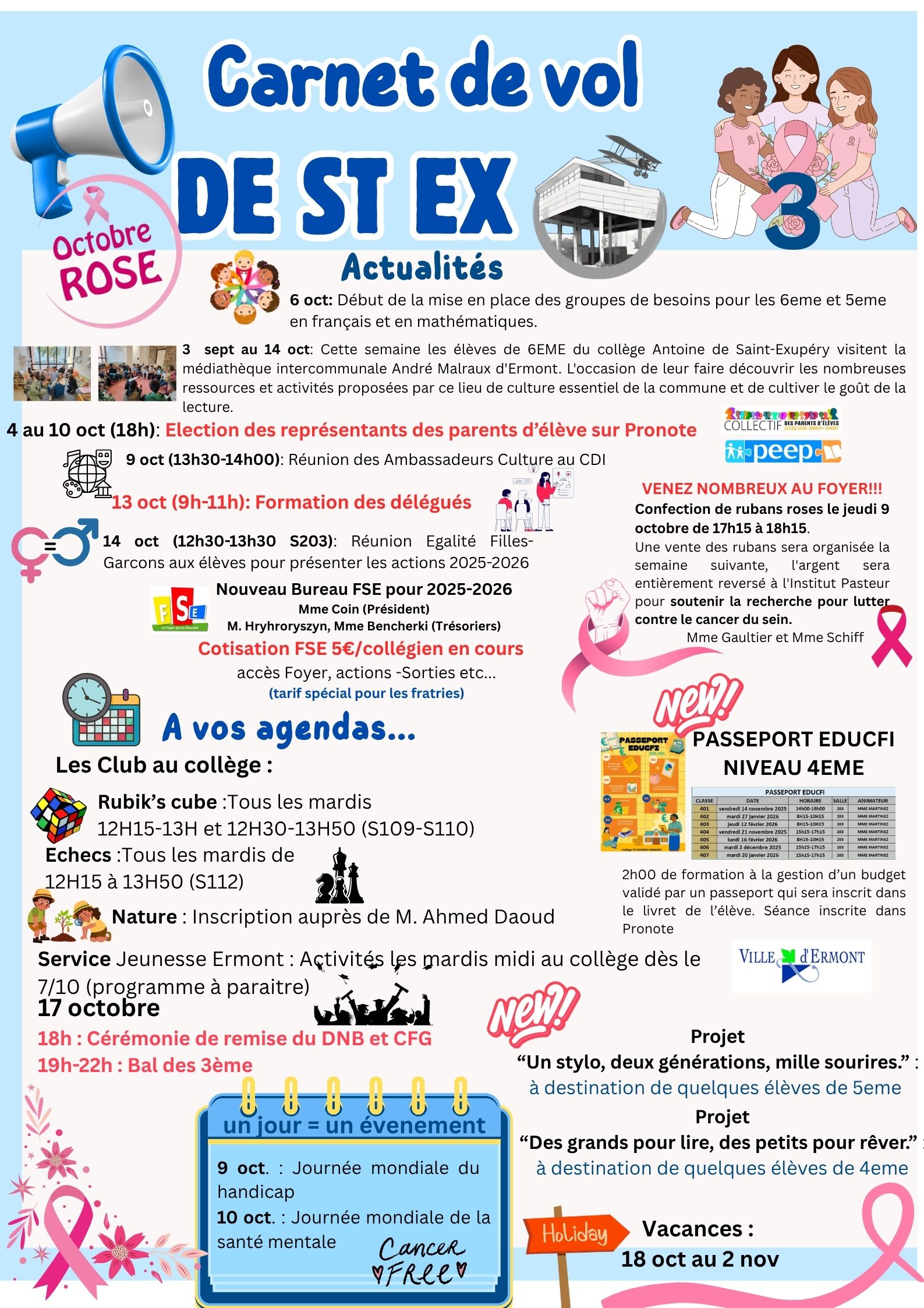 Au collège Saint-Exupéry, chaque jour est un projet, chaque élève un acteur ! Bonne lecture ! Carnet de Vol de St EX N°3 Étiqueté avec :2025/2026 Carnet de vol de St Ex